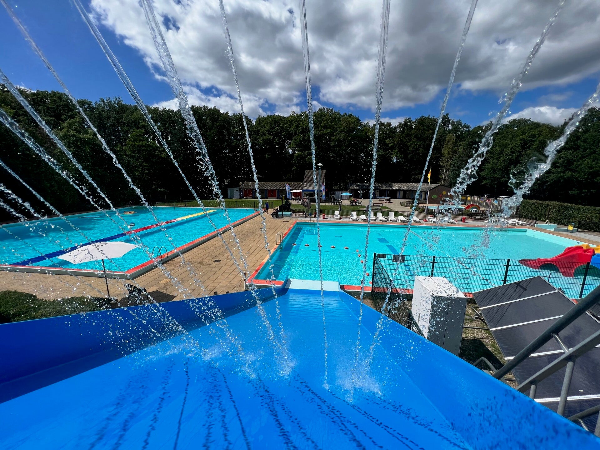 Ons zwembad beschikt over een diep bassin met springplank en loopmat, een ondiep- en peuterbad, en een grote glijbaan. Urenlang waterplezier is gegarandeerd!